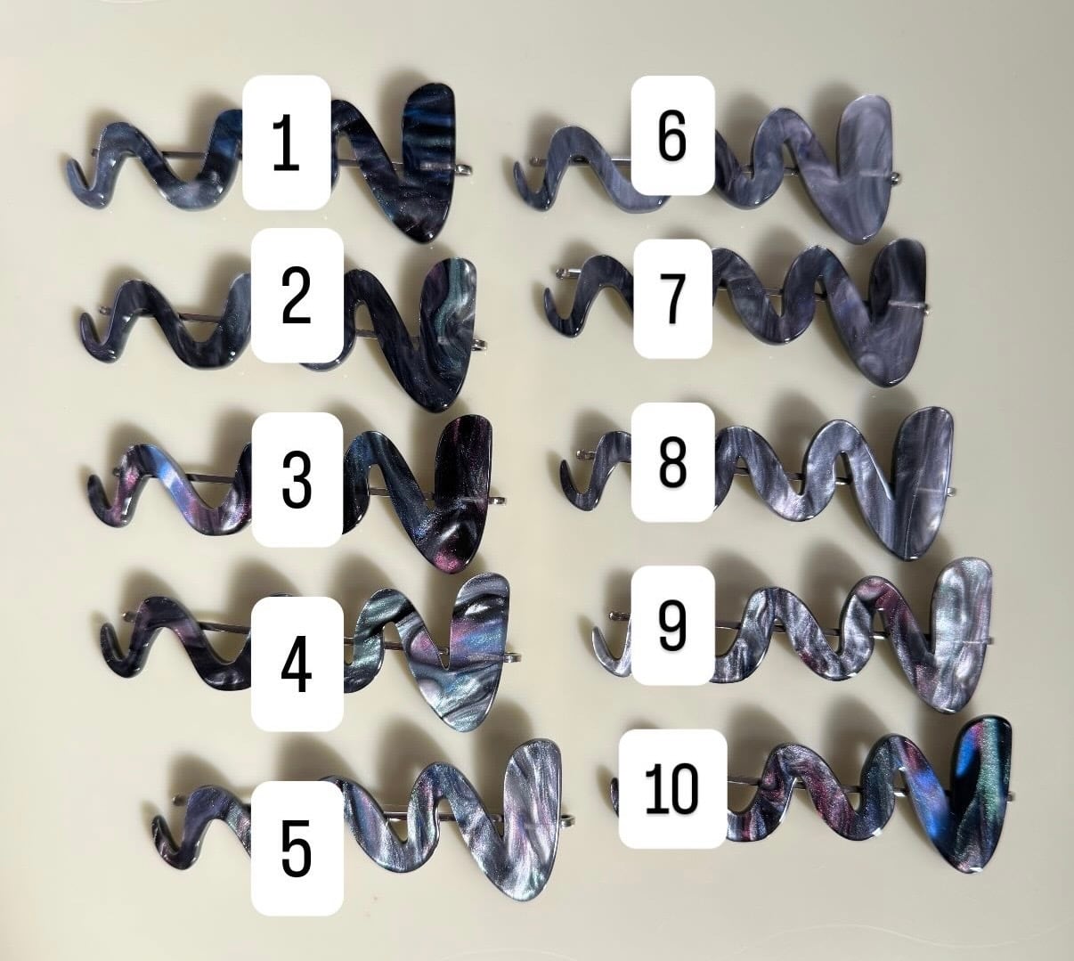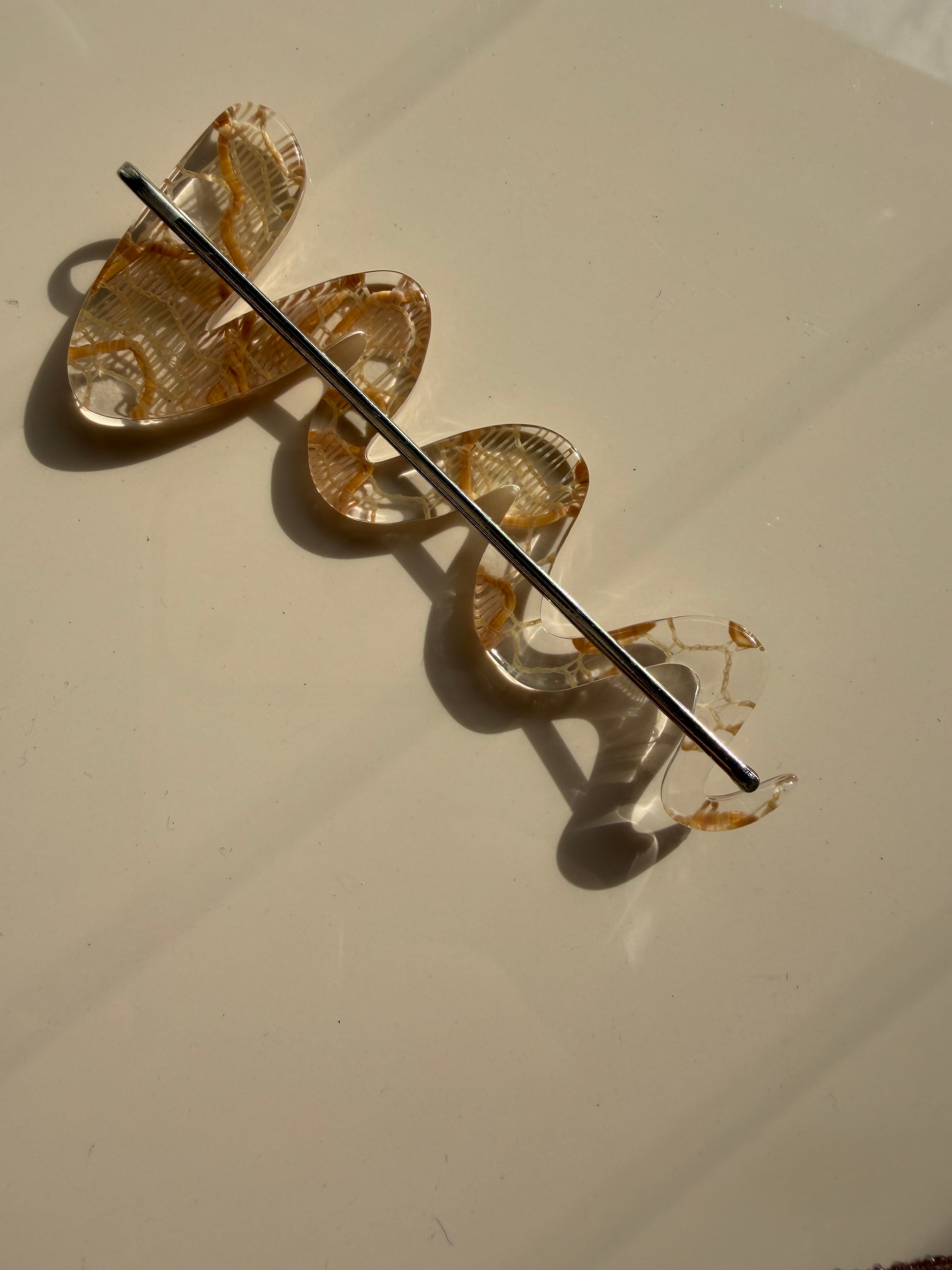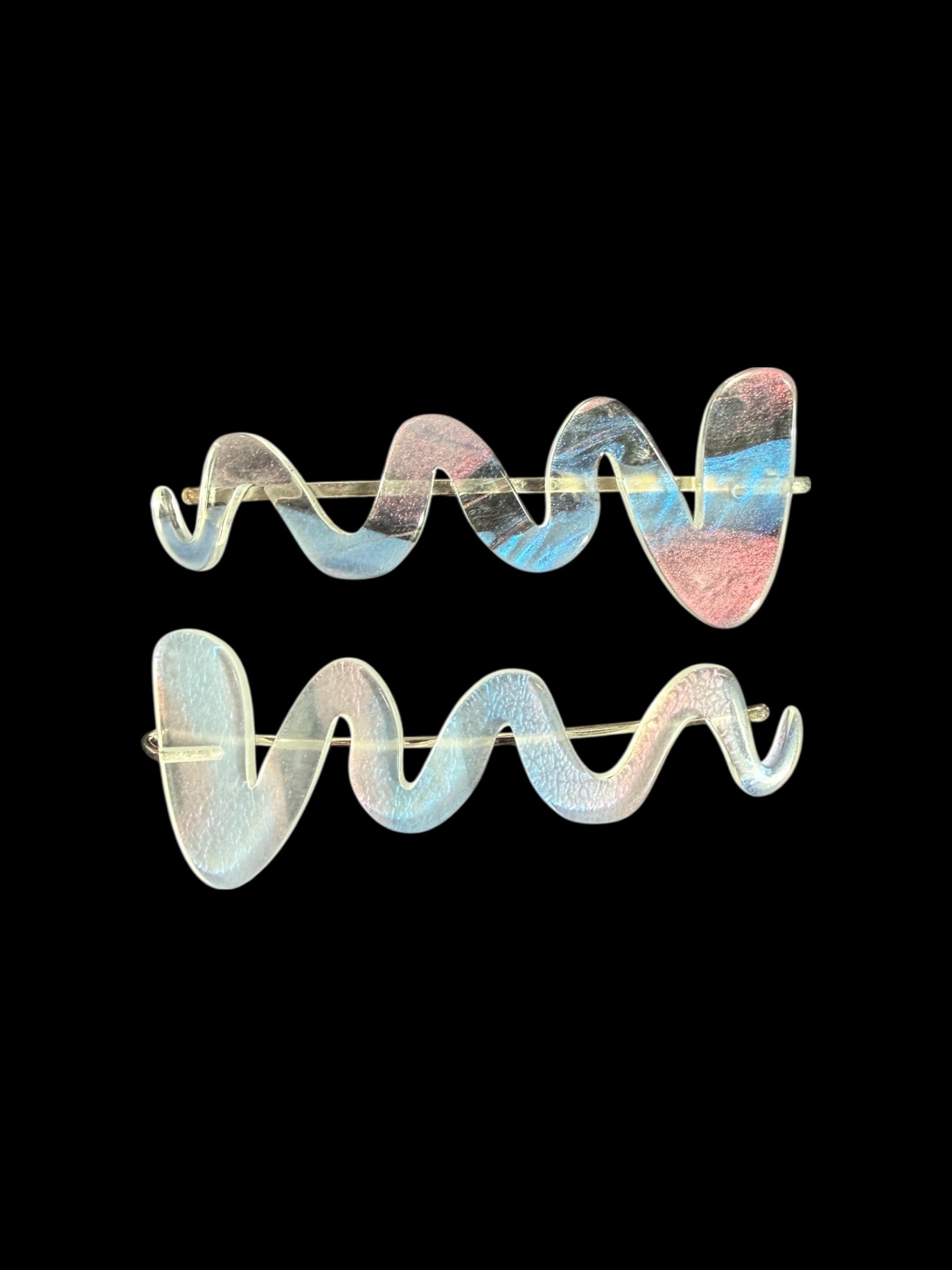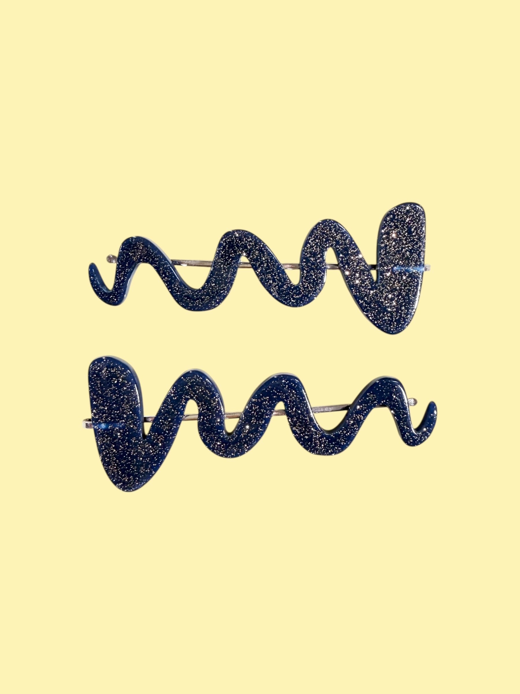 ボールペンの試し書きをイメージして製作したななみなみ模様のヘアピン。