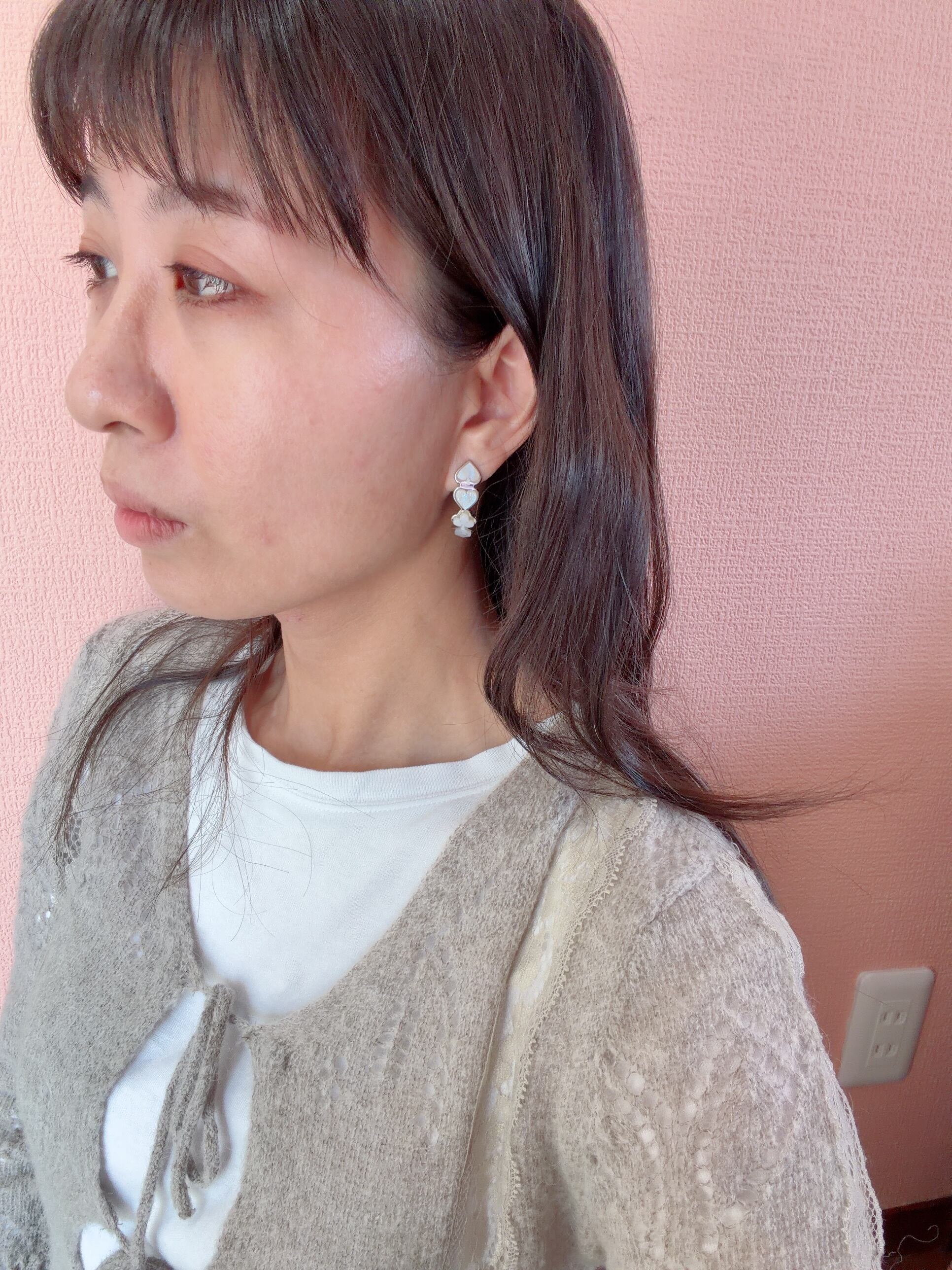 耳元にすとんと落ちるシルエットは、横顔をすっきり見せてくれる効果も◎
