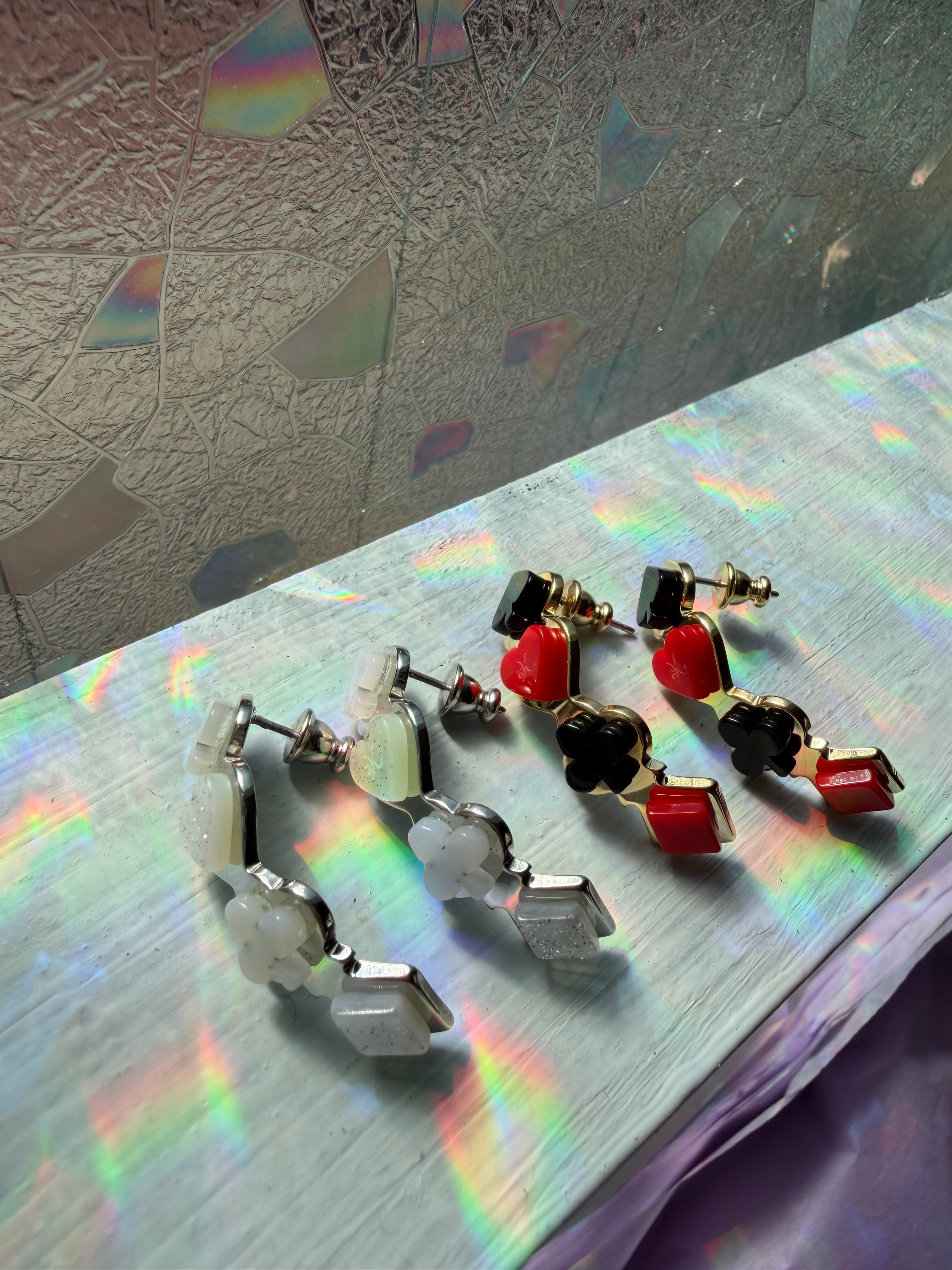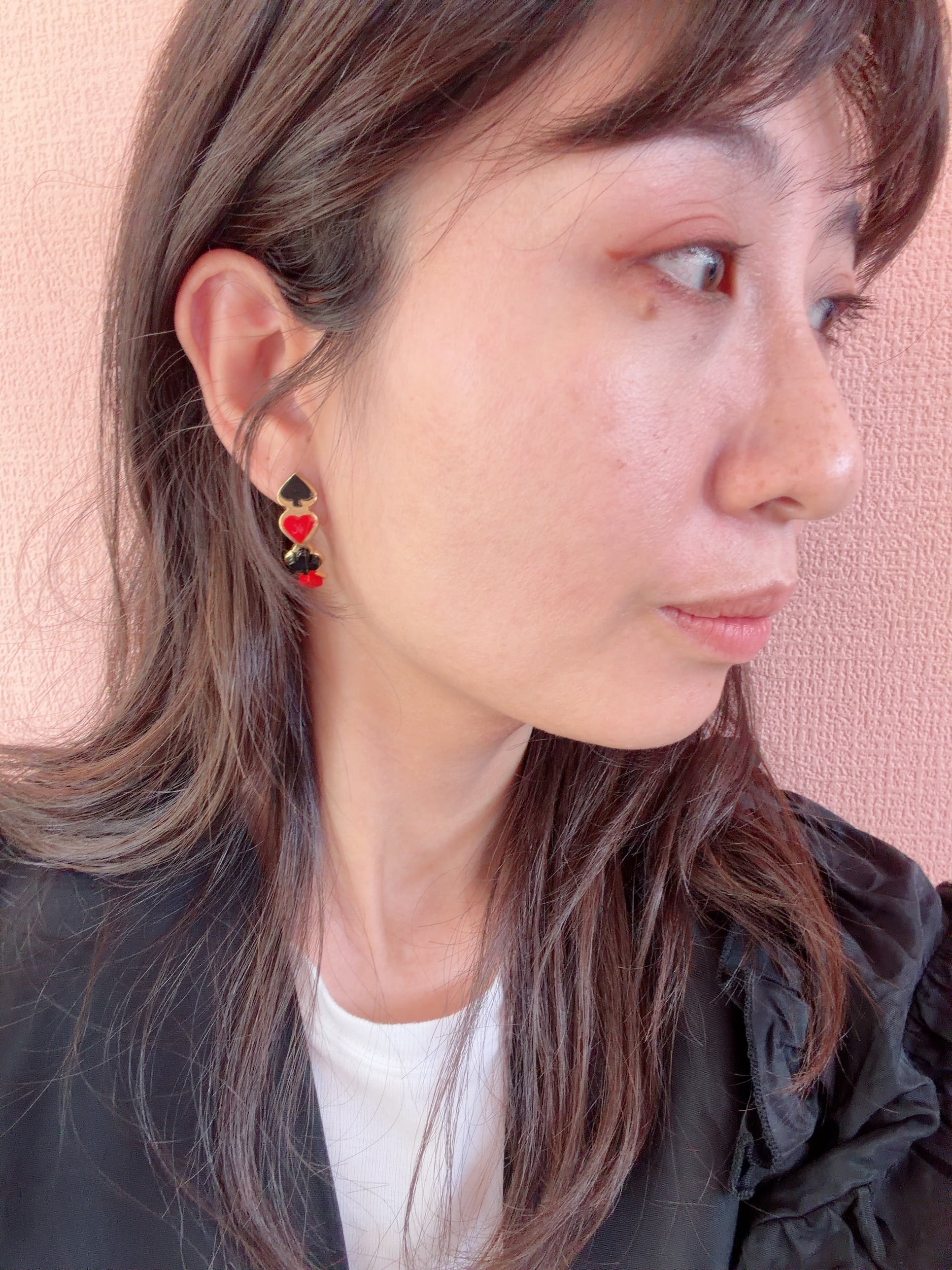 (トランプ柄の土台の金属は真鍮になります。お耳に少し当たる部分になりますので
